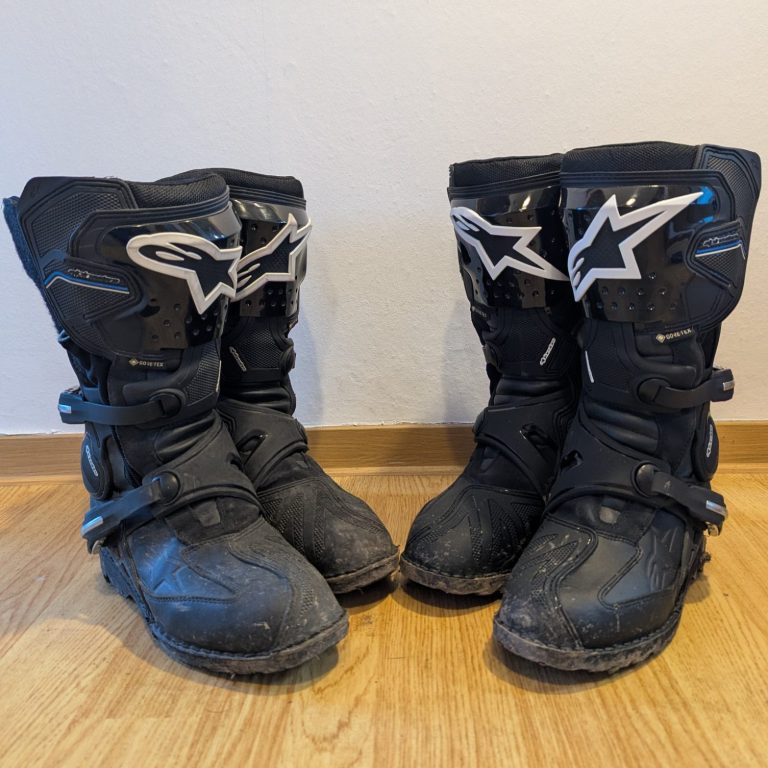 Wir beide haben uns für die Toucan Schuhe von Alpinstar entschieden. Hohen Schaft und sehr robust. Nico hat seine schon seit Lettland getestet.