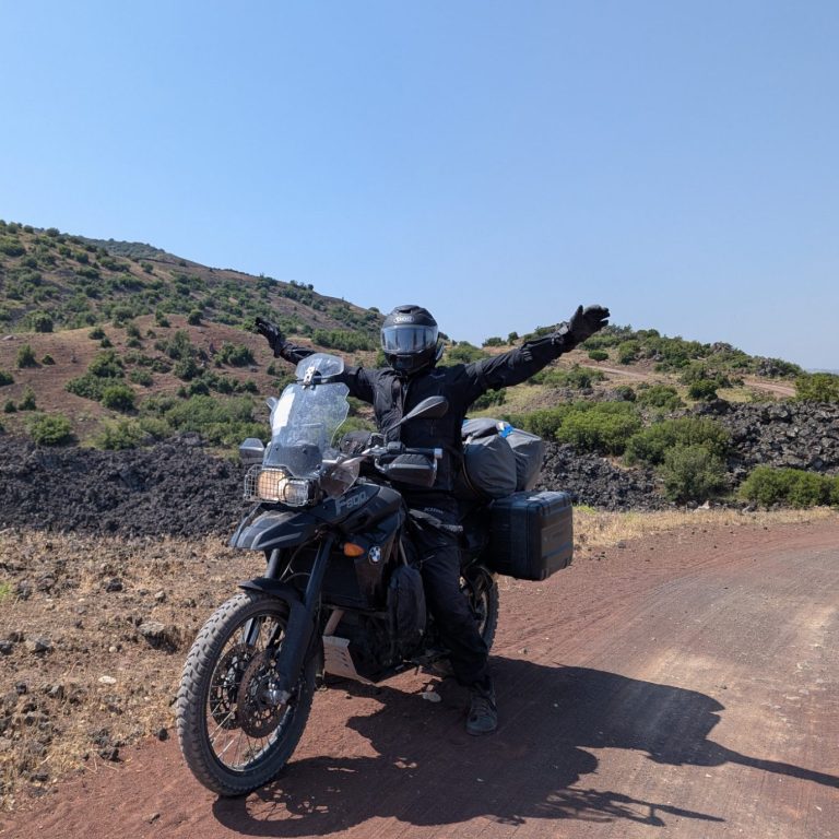 Nico fährt mit Wall-e die Afrika Tour. Wall -e ist Baujahr 2021 und hat aktuell gute 12.000 Kilometer auf der Uhr. In einem schönen schwarz, unauffällig und elegant. Mal sehen wie lange Sie so schön sauber ist.